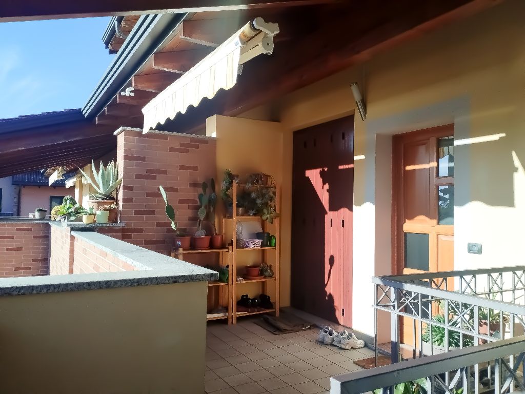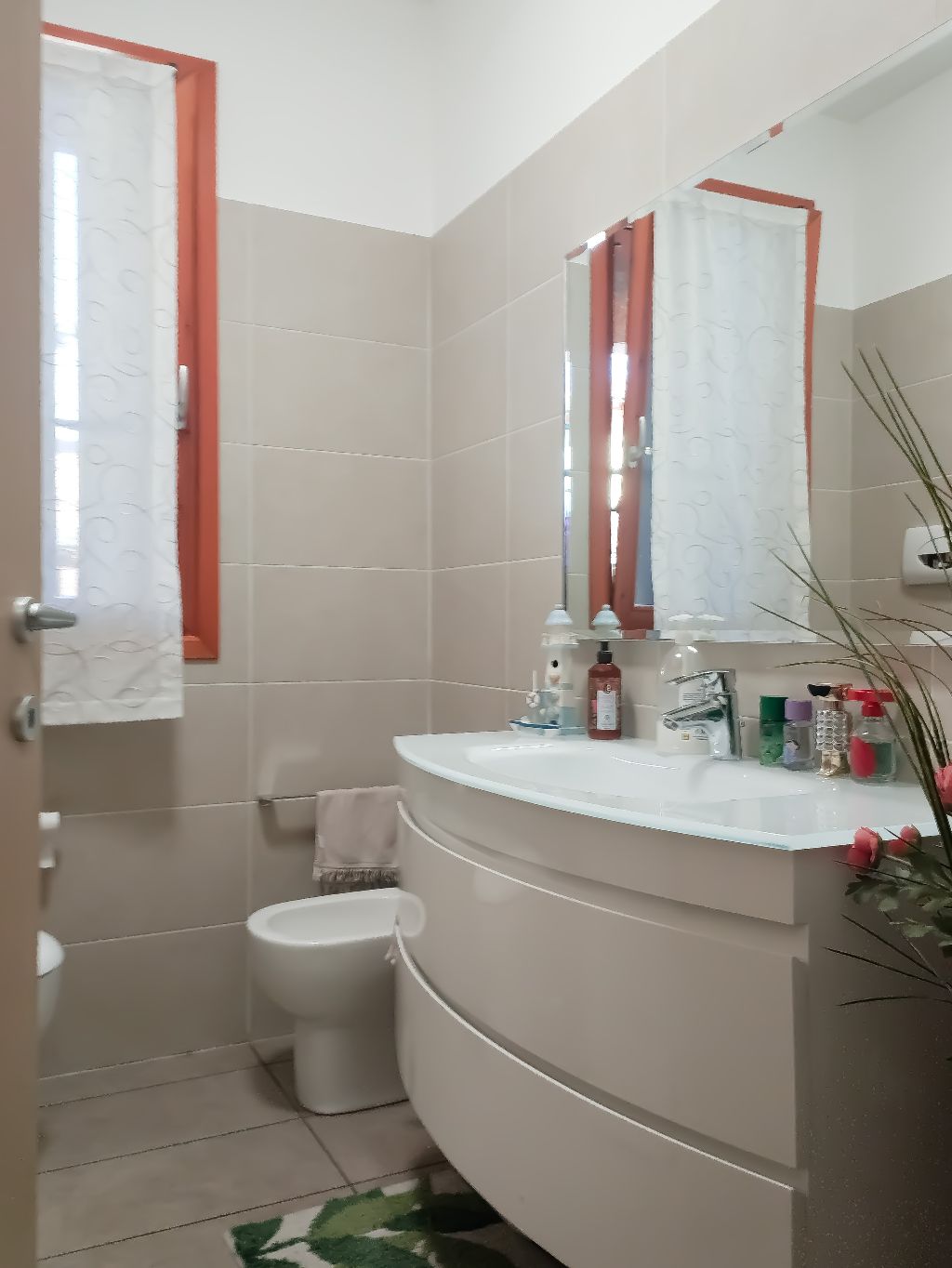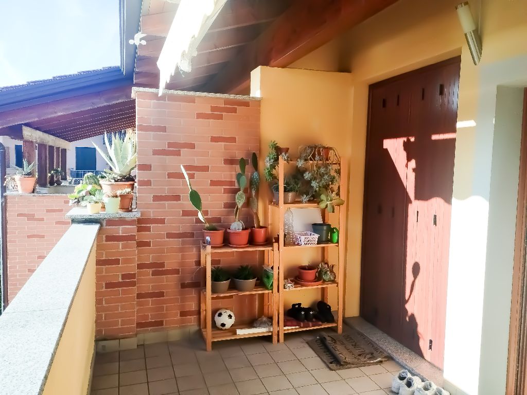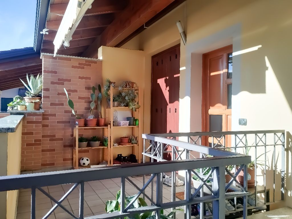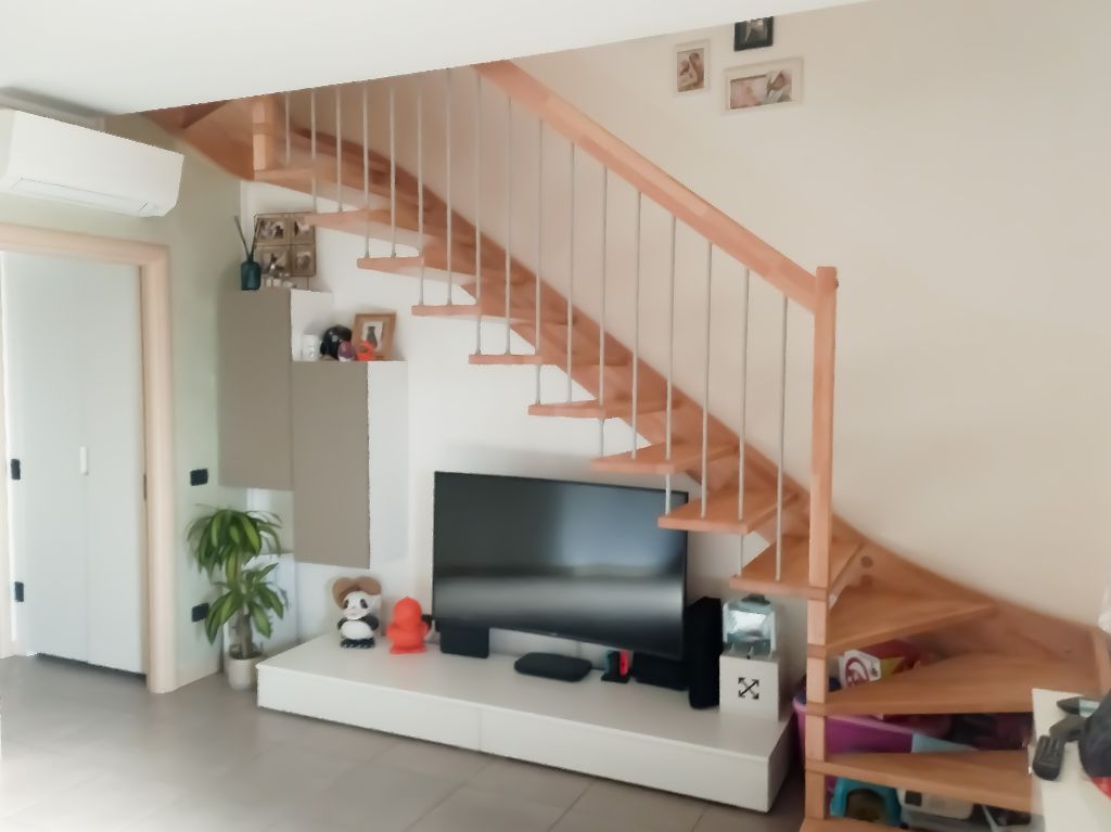 al Piano terra con piccolo giardino privato dove è stata posizionata erba sintetica, proseguendo sempre nella proprietà collegamento diretto con la zona giorno posta al piano primo, al termine della scala privata ampia terrazza in parte coperta ed in parte con tenda motorizzata, ingresso dalla zona giorno dove nella prima parte trovano spazio dal un lato la zona Tv e dall'altro ampia zona divano, la cucina separata dalla zona giorno permette di avare da un lato la zona pranzo di buone dimensione e dagli altri due lati la zona cucina ad "L".