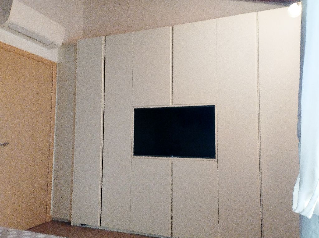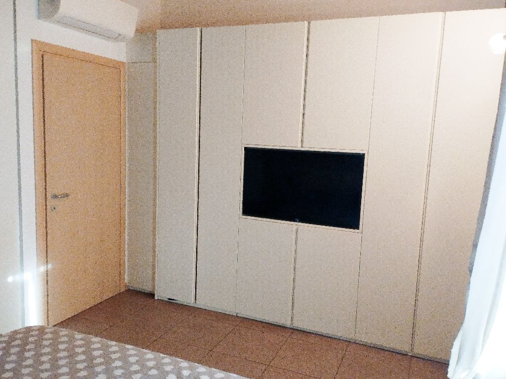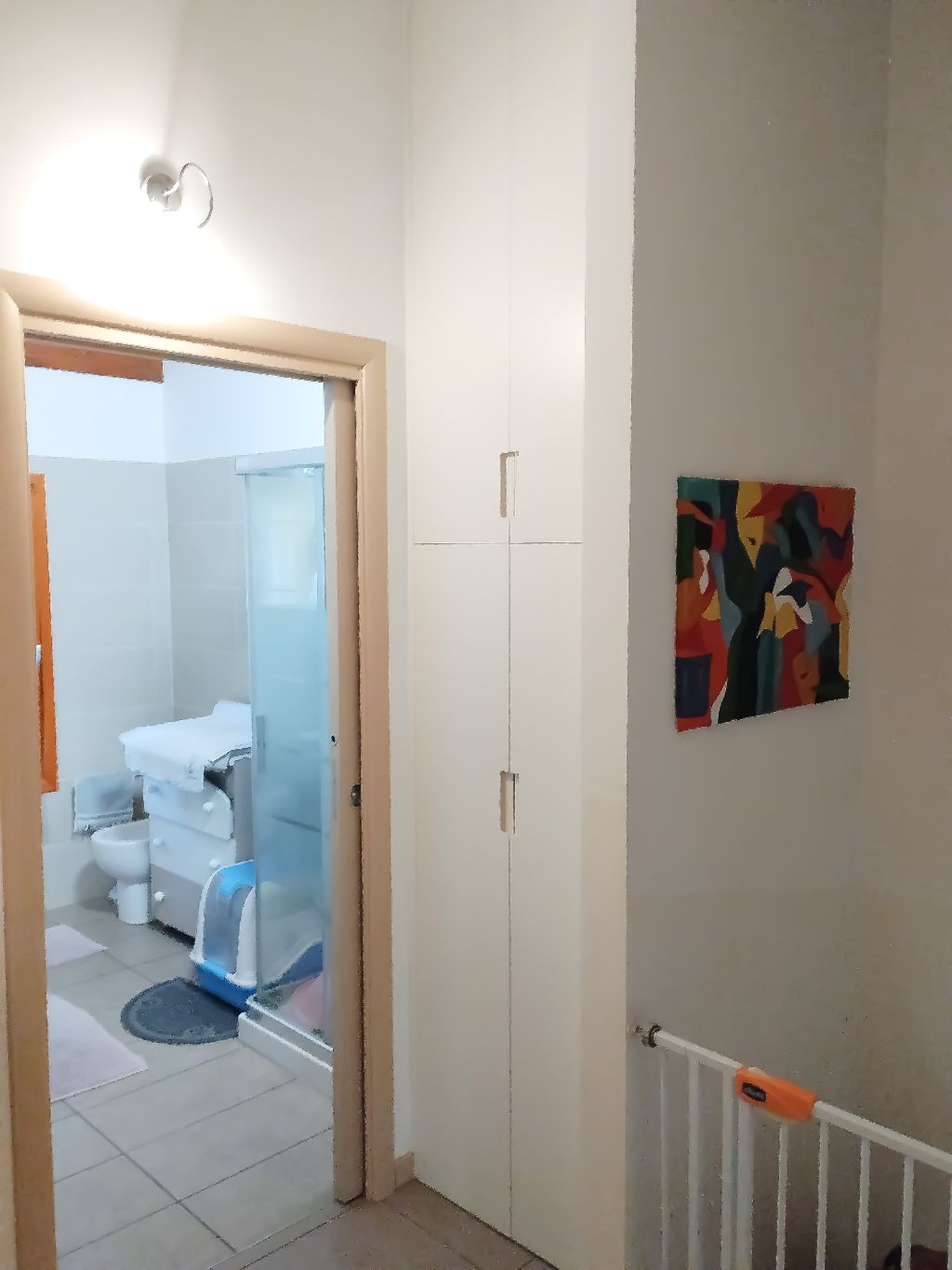 A terminare la zona giorno piccolo disimpegno con mobile su misura per dispensa / appendi abiti / scarpiera con funzionale bagno di servizio