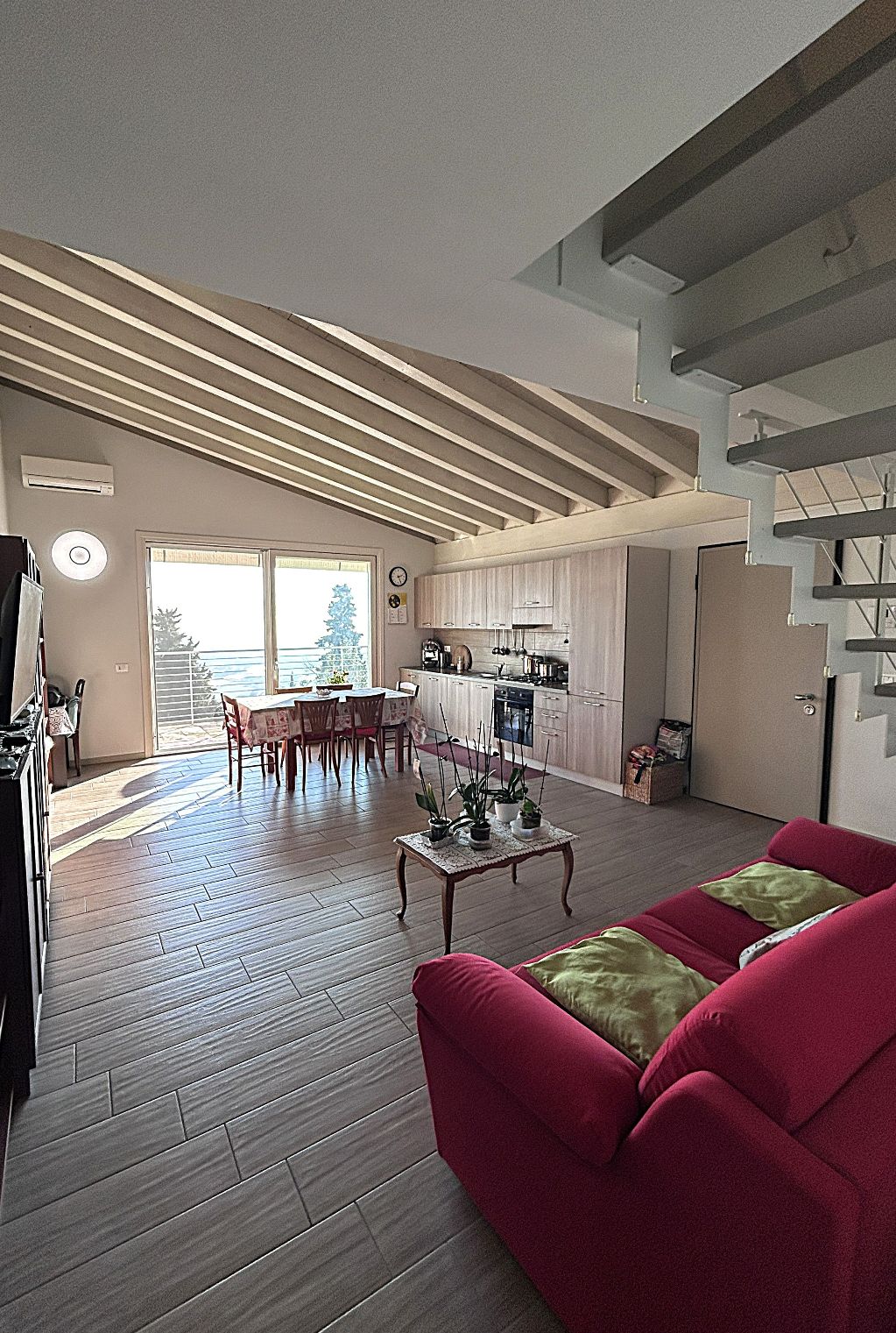 Completano la proprietà: garage doppio con basculante motorizzata, grande tenda da sole con telecomando e sensore vento, climatizzatore, predisposizione allarme e giardino.