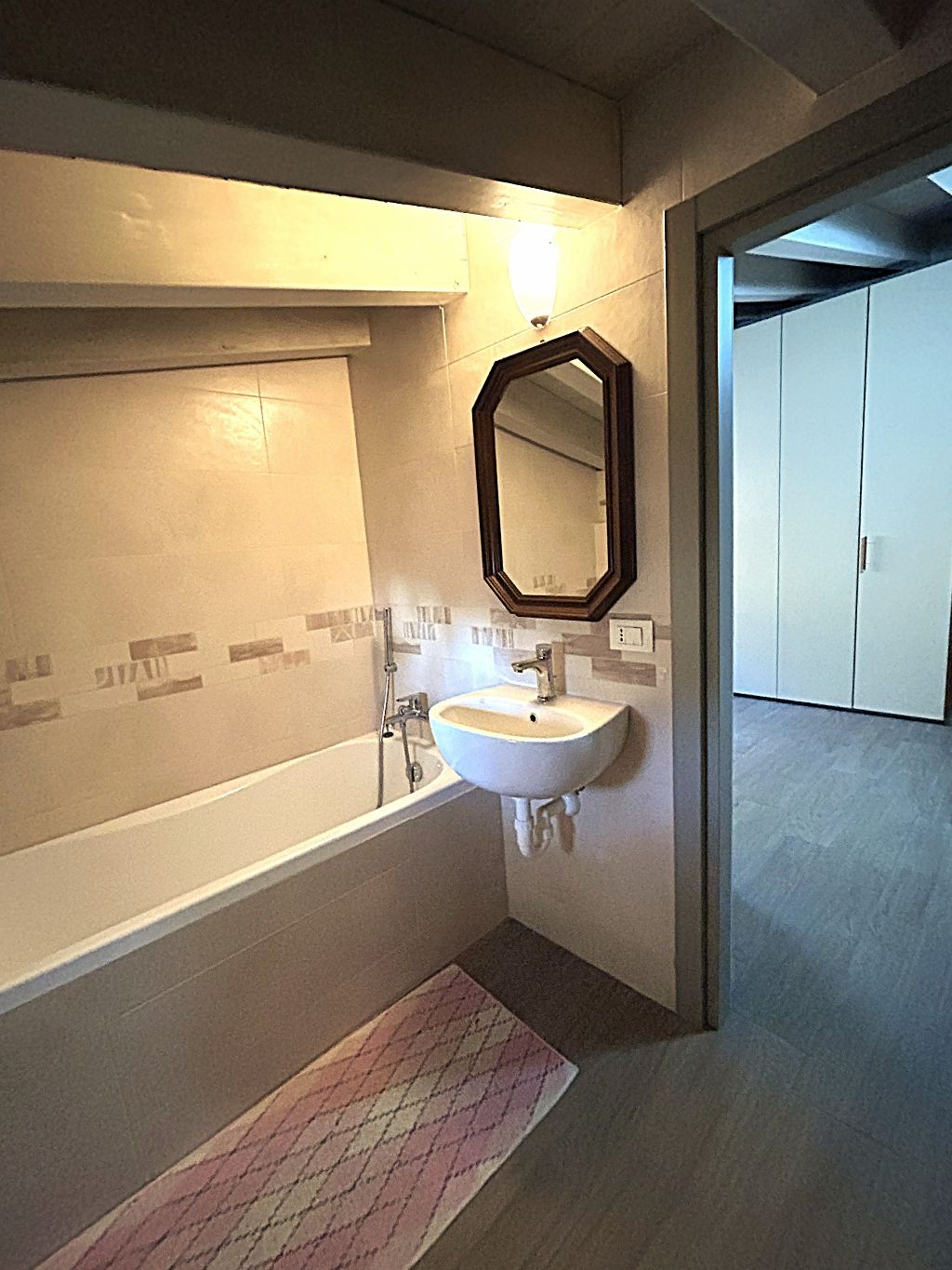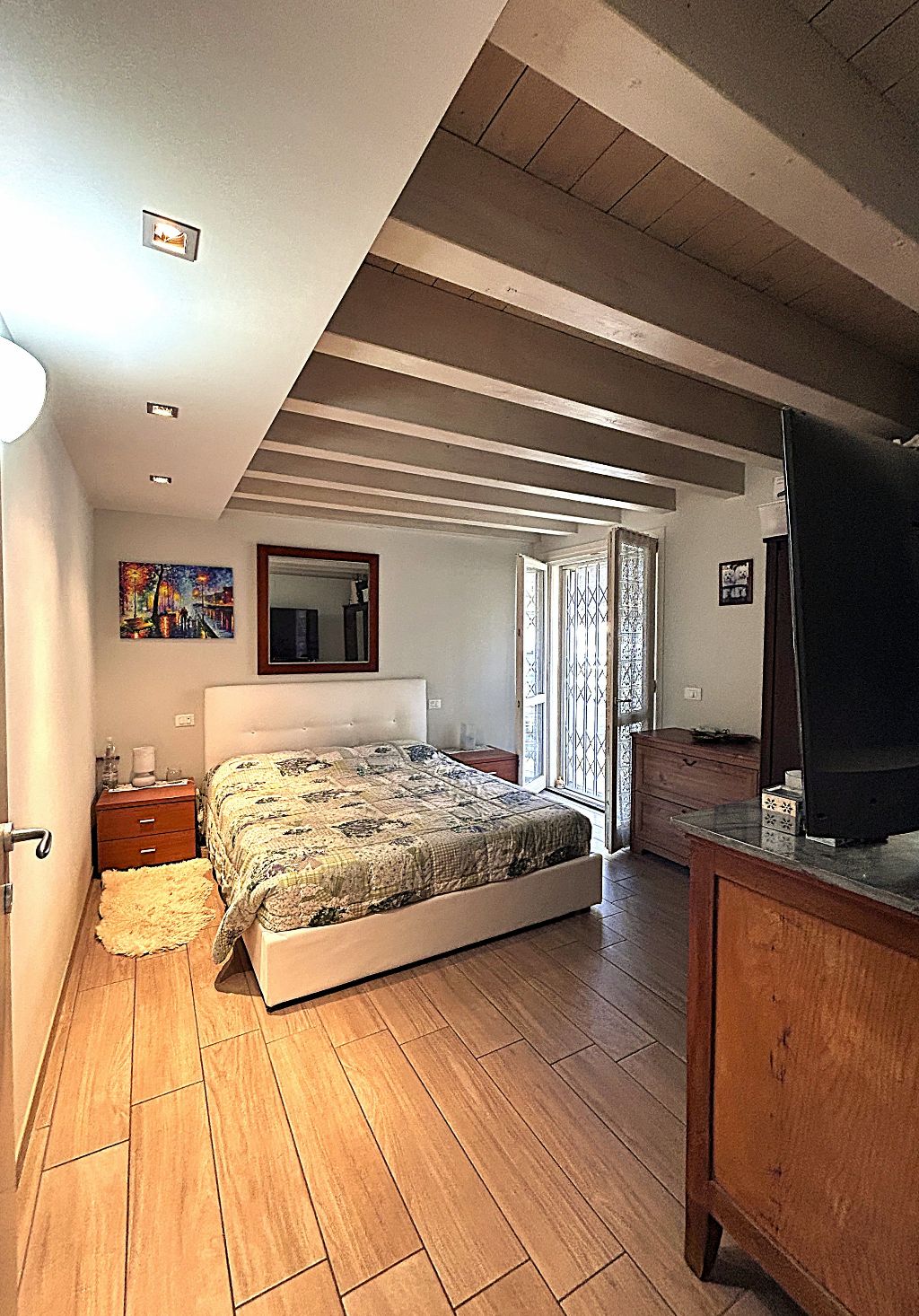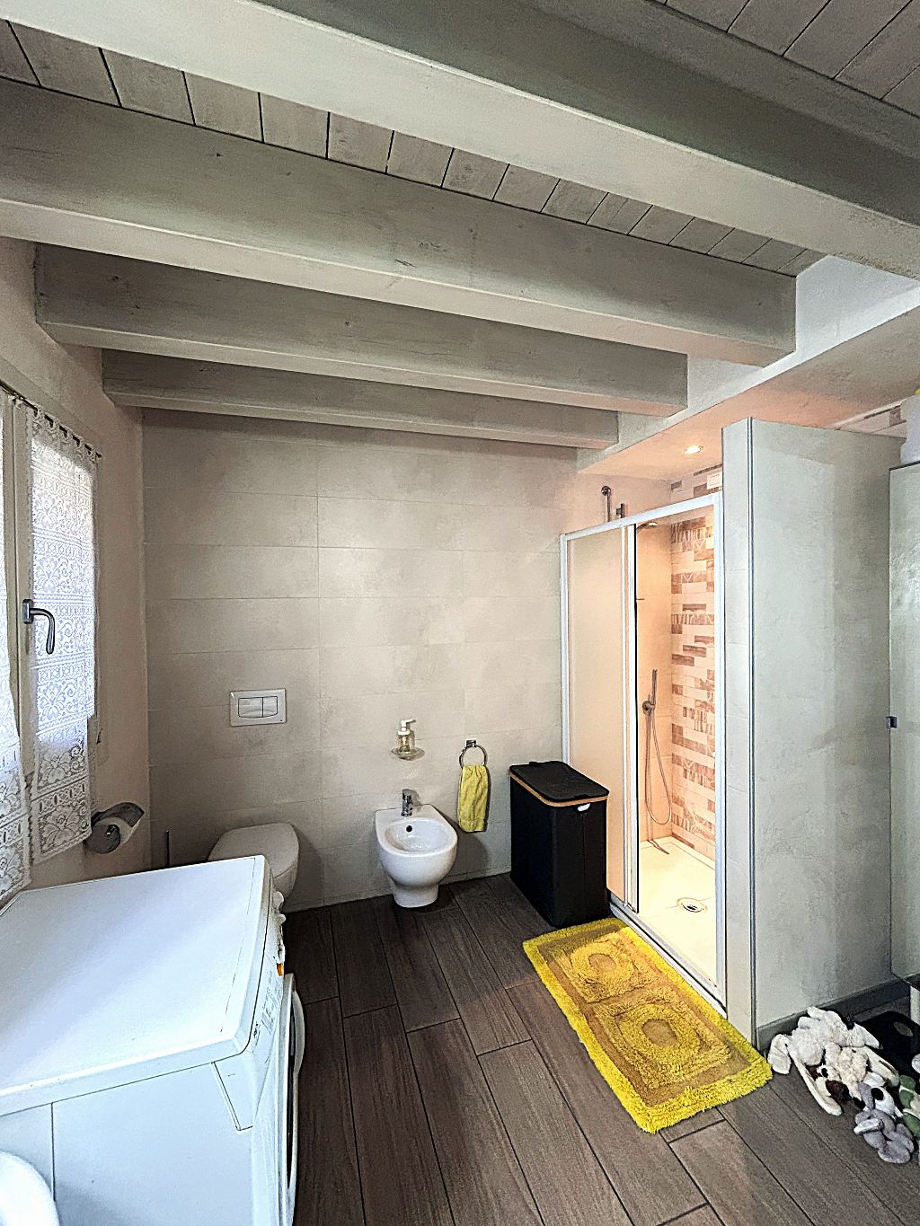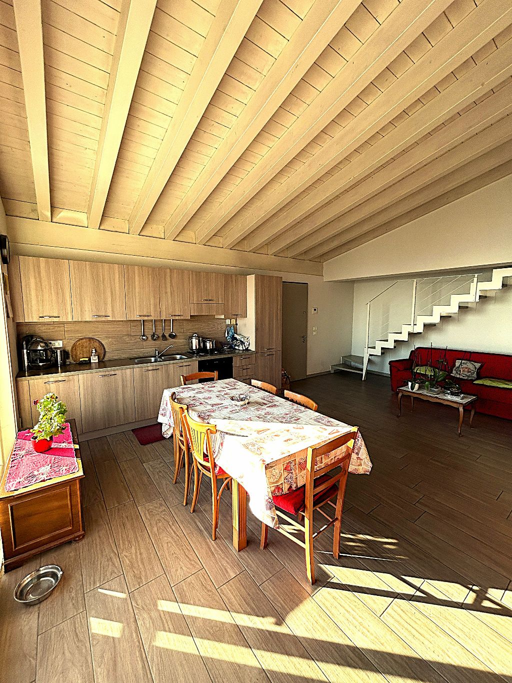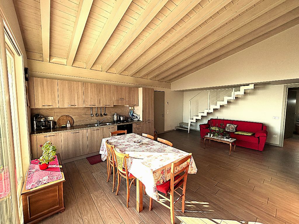 Il piano superiore, accessibile da elegante scala interna, offre spazi aggiuntivi ideali per chi cerca versatilità: un bagno separato (con vasca), un comodo disimpegno ed un ambiente finestrato, che si prestano a diventare vere e proprie aree godibili supplementari. Ogni dettaglio è stato curato con attenzione: pavimenti in gres porcellanato, porte, serramenti ed impianti (riscaldamento a pavimento e pannello solare), infissi in legno laccato con vetrocamera ad alte prestazioni energetiche (Classe B).