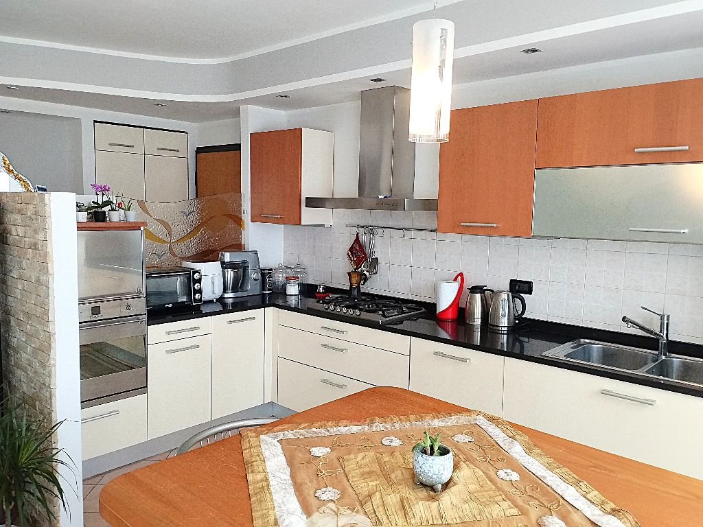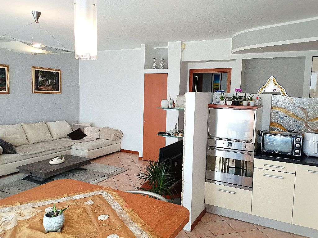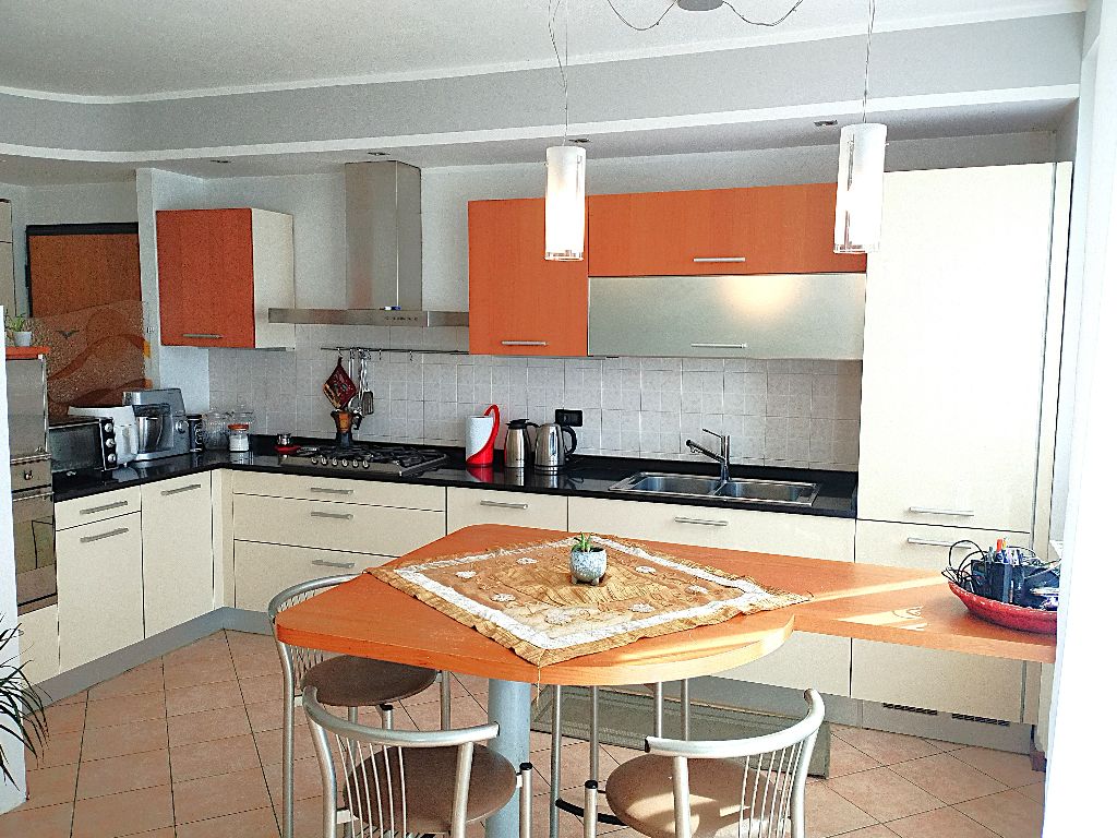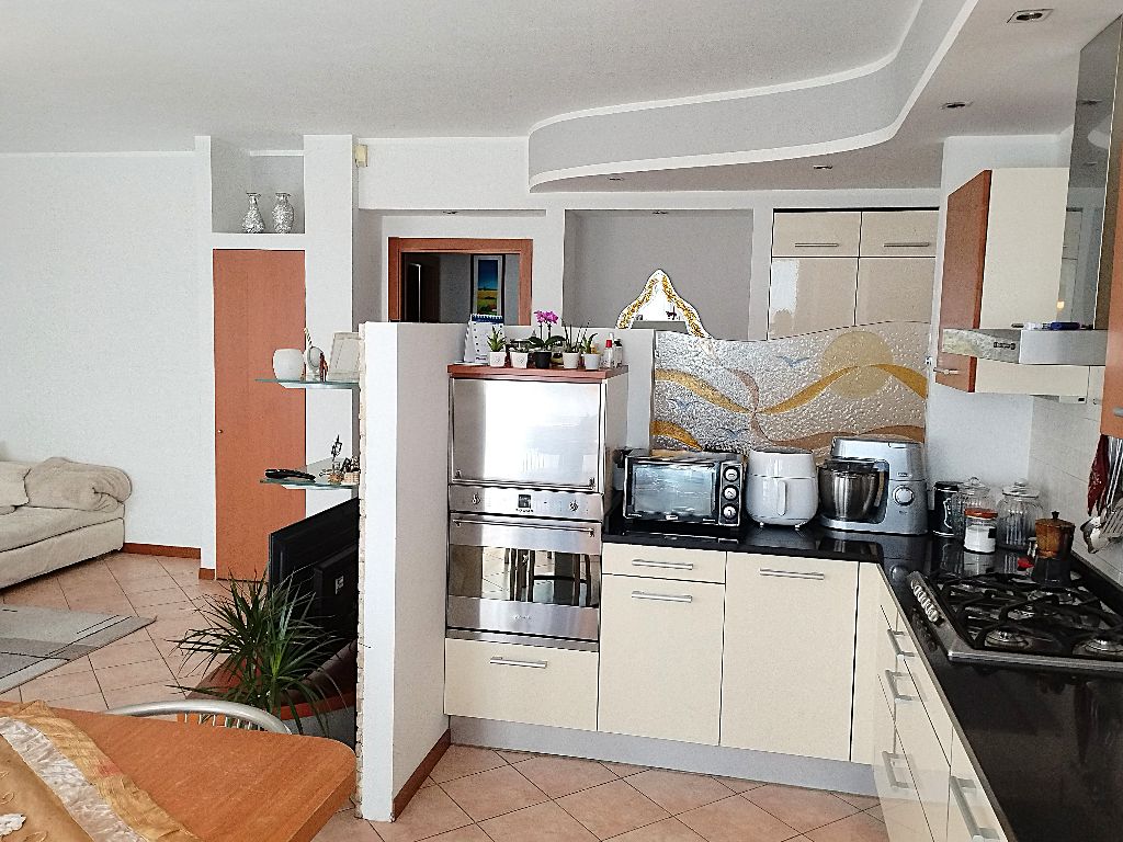 La cucina semi abitabile offre generosi spazi di arredo, con comodo bancone e tavolo integrato, viste le dimensioni da un lato si può inserire ampia zona divano ben separata dalla zona pranzo.