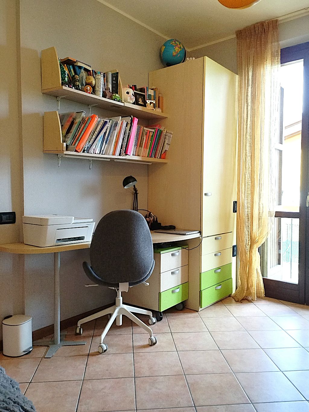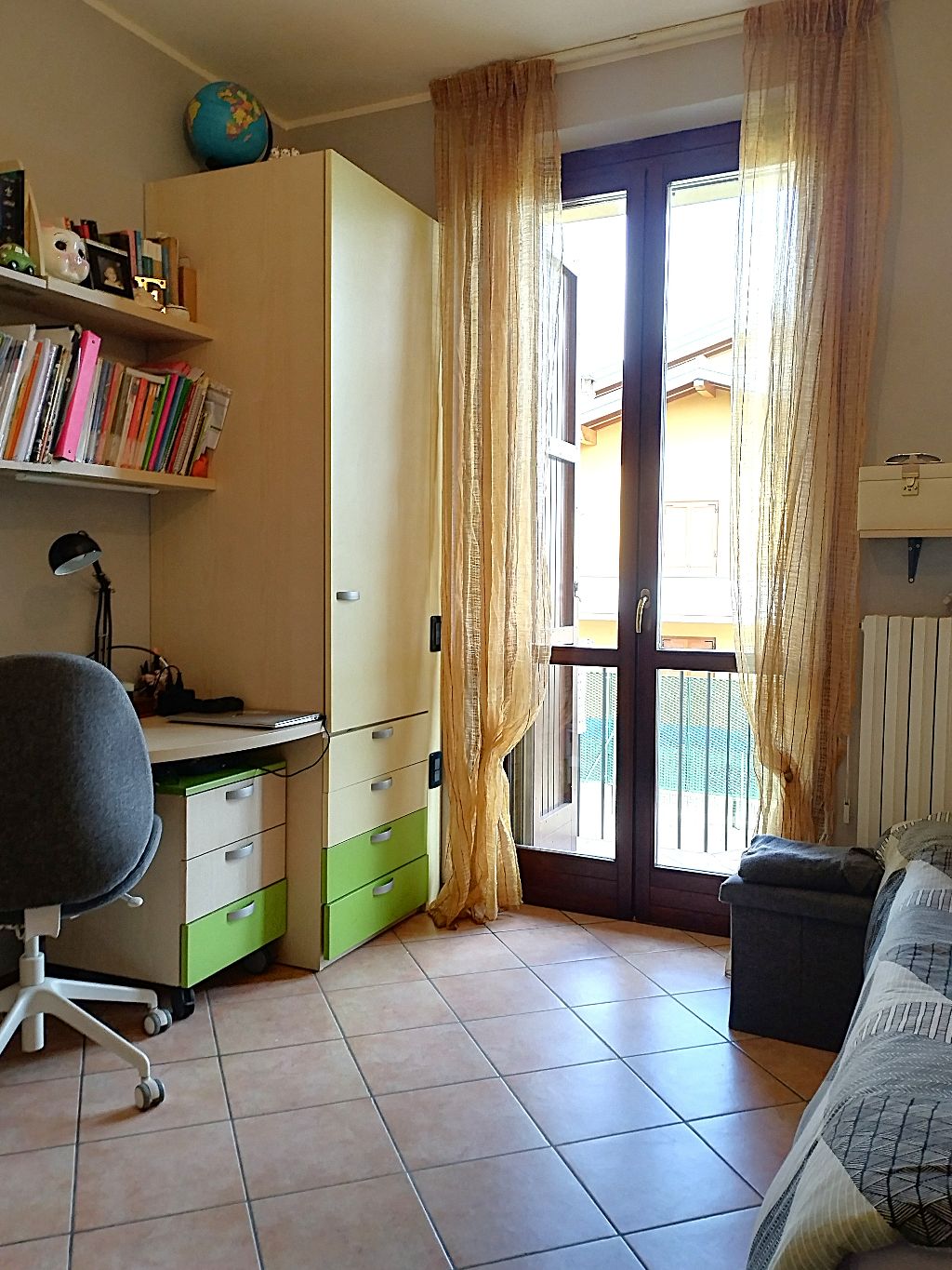 Generosa camera doppia arredabile con 2 letti, mobile a ponte e lato libero per inserire scrivania con porta finestra per accedere all'ultimo terrazzo