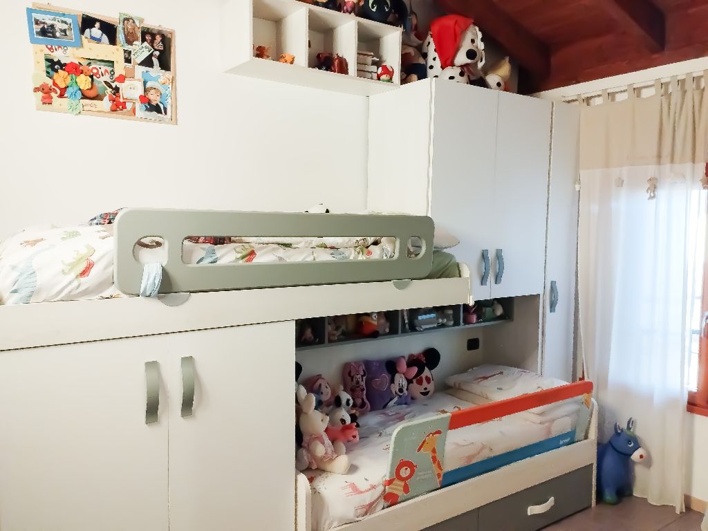 Dalla caratteristica scala in legno lamellare collegamento interno che porta al piano secondo e ultimo con 2 ampie camere da letto e bagno padronale con doccia.