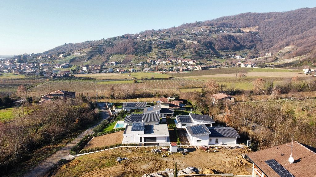 Avvolta e circondata dal verde della splendida collina di Grumello del Monte - BG, nel caratteristico residence di sole ville singole ai piedi della collina di San Pantaleone, questa lussuosa villa moderna con possibilità di piscina è in fase di realizzo e vendita a due passi dal centro paese.