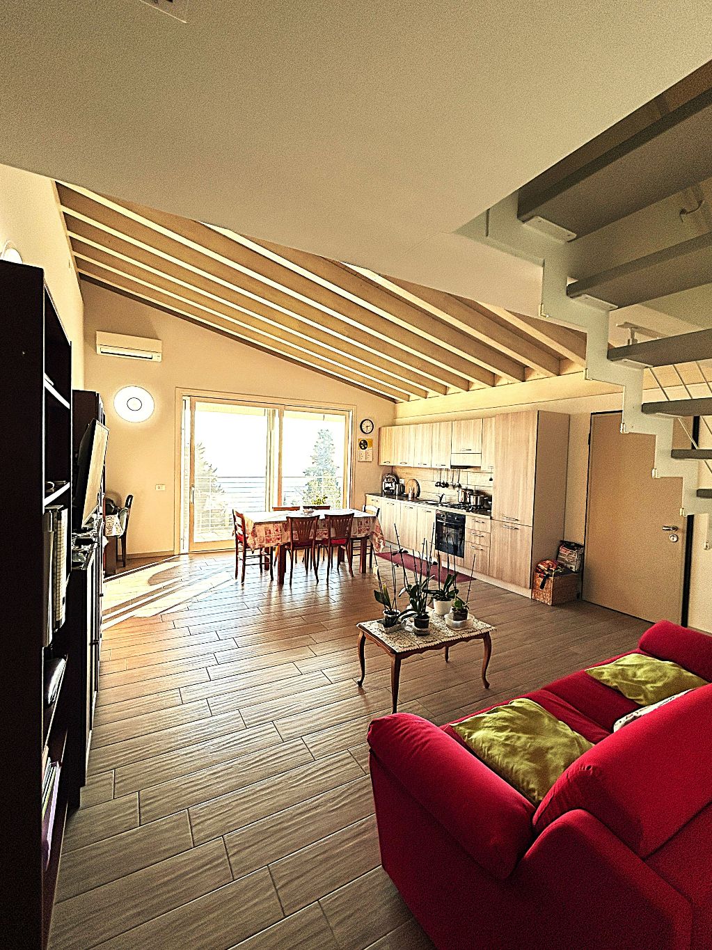 Completano la proprietà: garage doppio con basculante motorizzata, grande tenda da sole con telecomando e sensore vento, climatizzatore, predisposizione allarme e giardino.