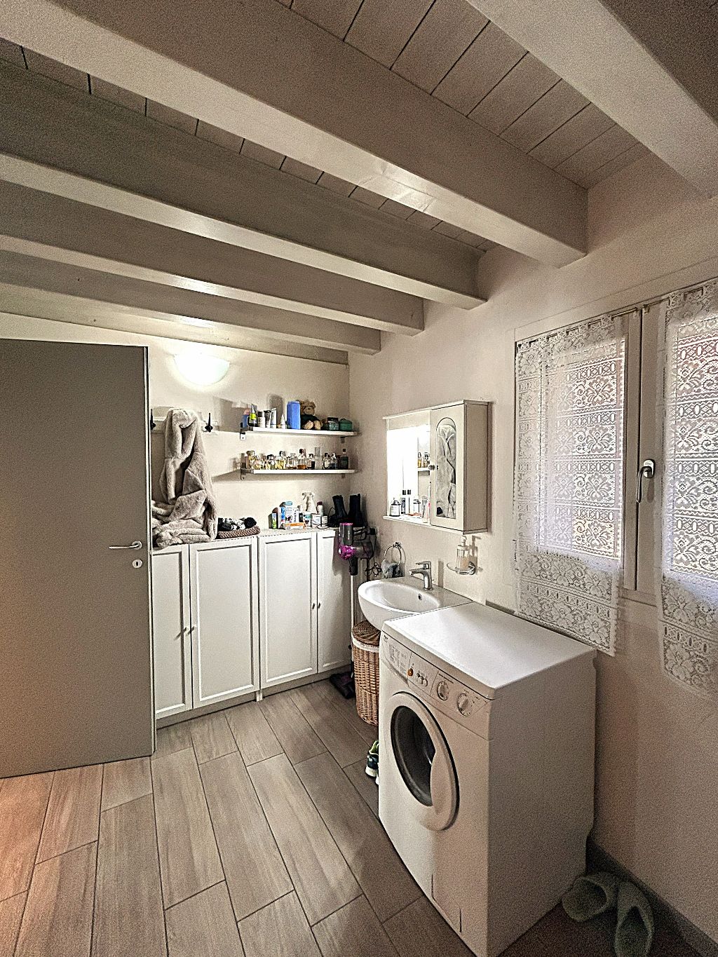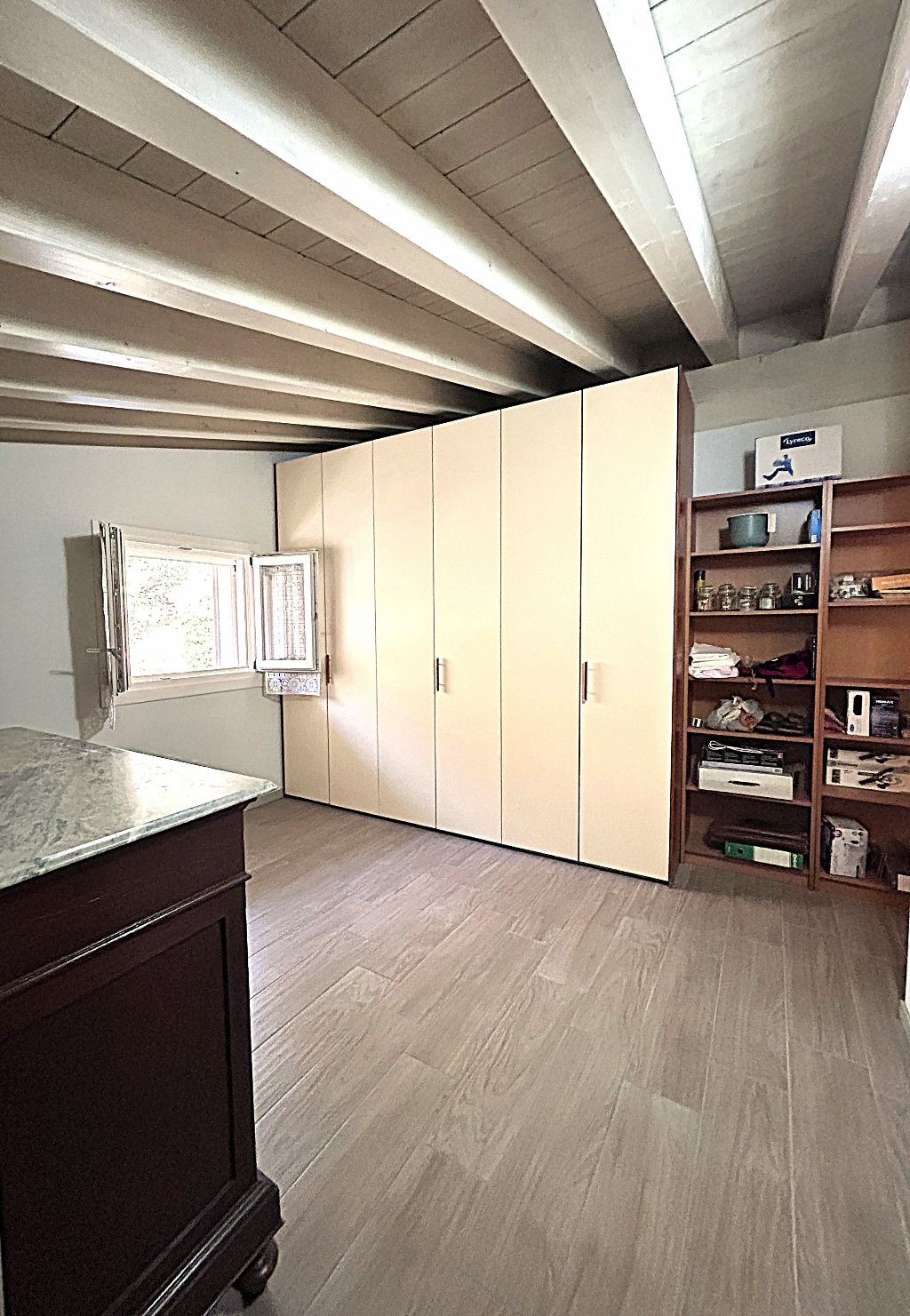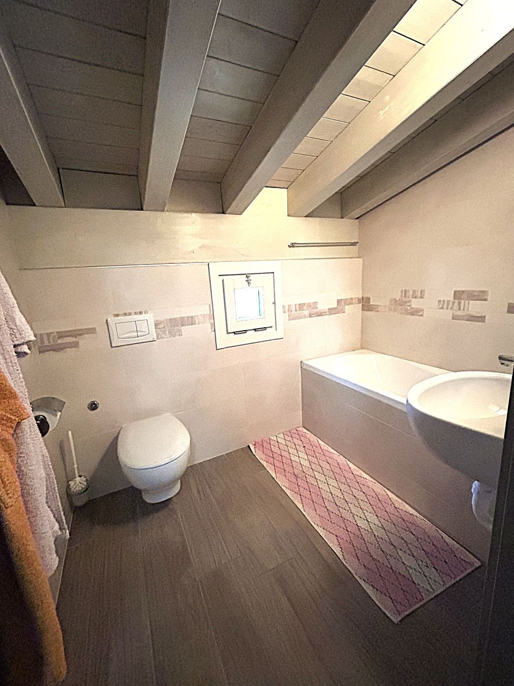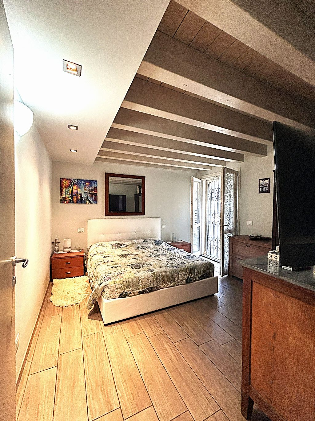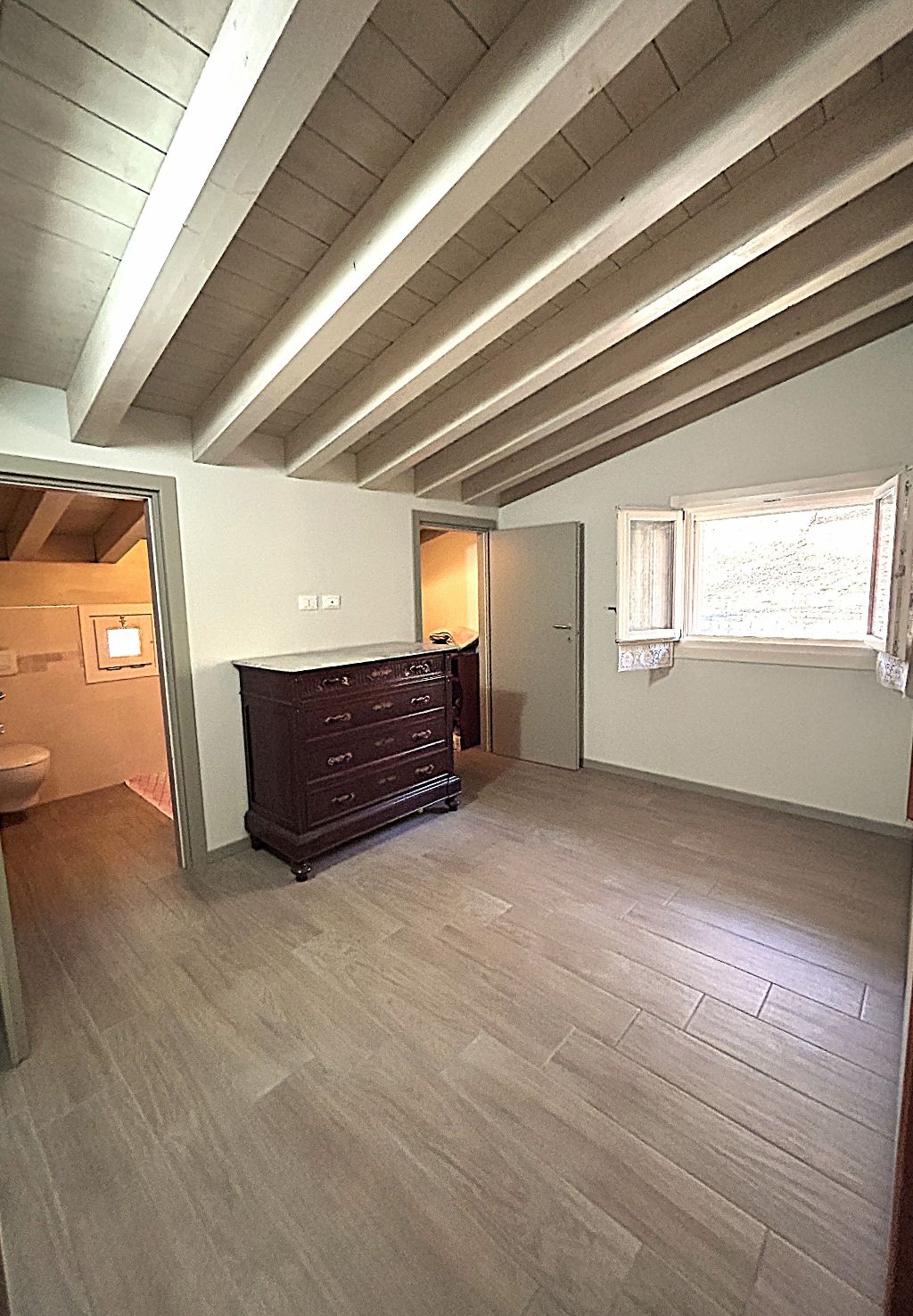 Il piano superiore, accessibile da elegante scala interna, offre spazi aggiuntivi ideali per chi cerca versatilità: un bagno separato (con vasca), un comodo disimpegno ed un ambiente finestrato, che si prestano a diventare vere e proprie aree godibili supplementari. Ogni dettaglio è stato curato con attenzione: pavimenti in gres porcellanato, porte, serramenti ed impianti (riscaldamento a pavimento e pannello solare), infissi in legno laccato con vetrocamera ad alte prestazioni energetiche (Classe B).