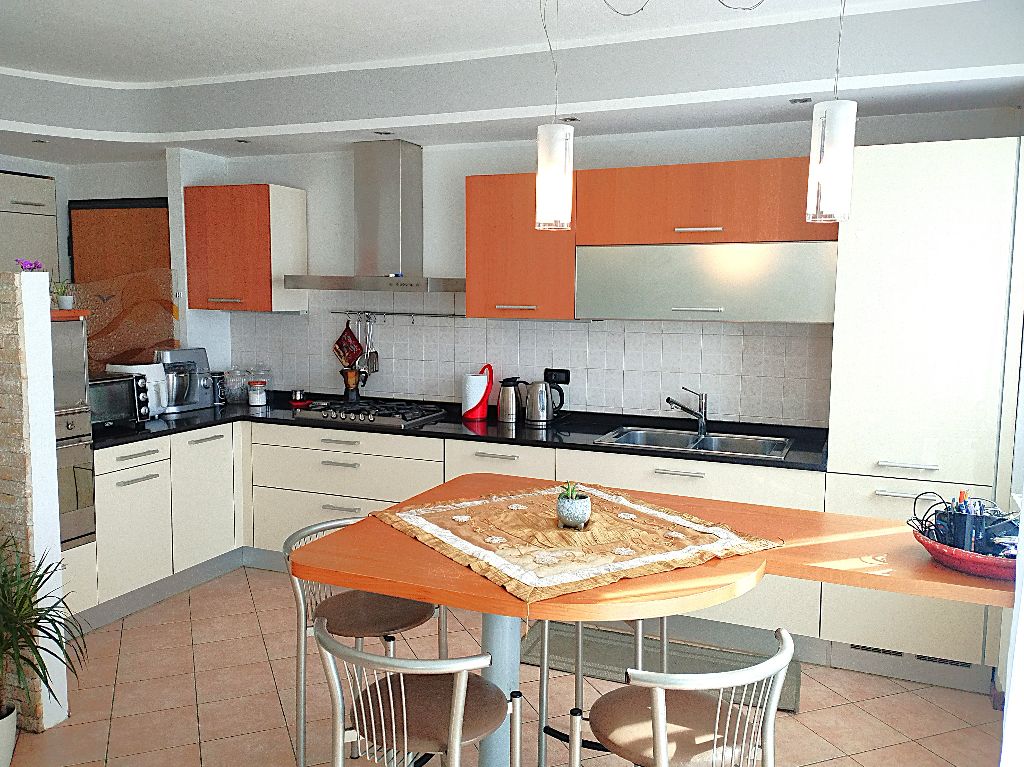 La cucina semi abitabile offre generosi spazi di arredo, con comodo bancone e tavolo integrato, viste le dimensioni da un lato si può inserire ampia zona divano ben separata dalla zona pranzo.